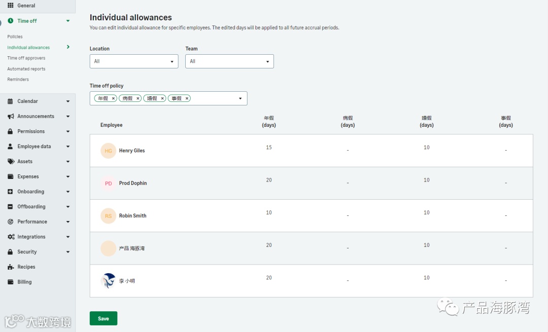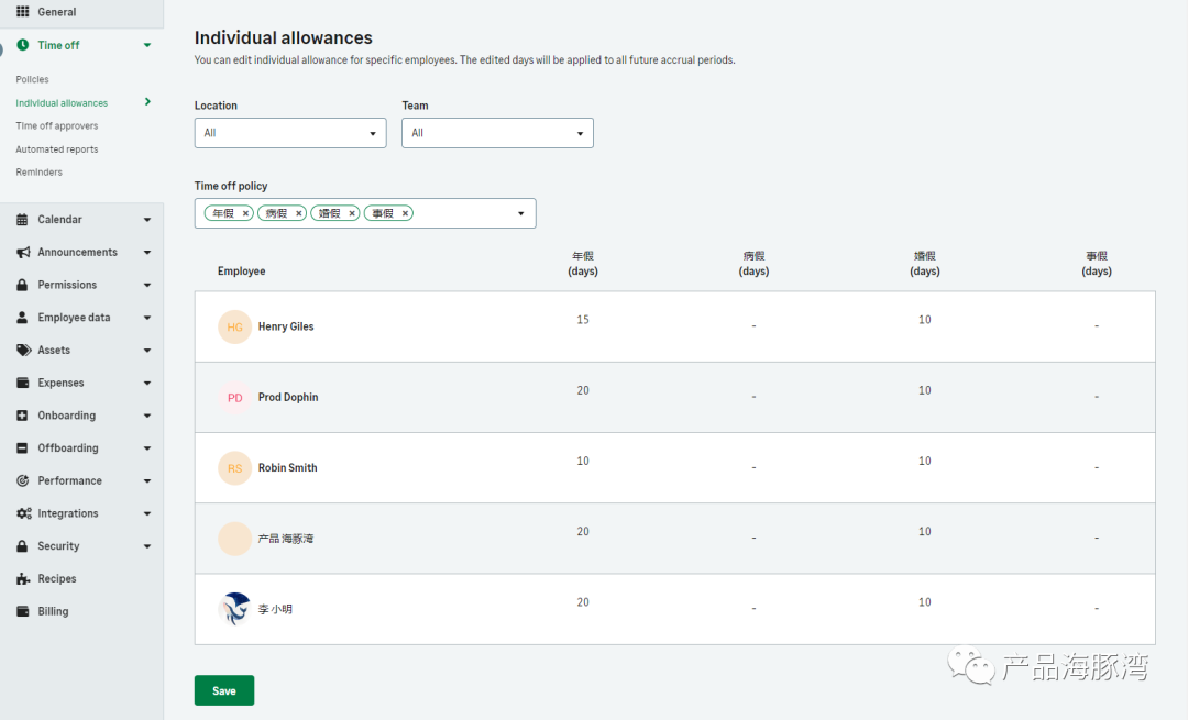 上两篇我们分配拆解了 SageHR 的组织与入离职管理和培训、薪酬、资产管理及通知公告,本篇我们继续 SageHR 拆解的第3篇,来看看 SageHR 的假期管理。相比前面的两个模块,假期管理会更为复杂。各类假期规则会让我们对 HR 软件的复杂度有更直观的理解。HR 软件是管理企业人力资源的,每个人本身就是独特的存在,因此,在设计 HR 软件时就需要考虑各种各样的特殊情况,这个时候,提供可配置能力就十分重要了。在 SageHR的假期管理模块中,我们就会看到他们的配置能力还是比较强大的,也非常具有参考价值。此外,SageHR 的请假分析还是非常专业的,比如我是第一次从他们平台了解到“Bradford因子”这么一个工具,可以来定量分析一个员工的请假行为对公司运营的影响。