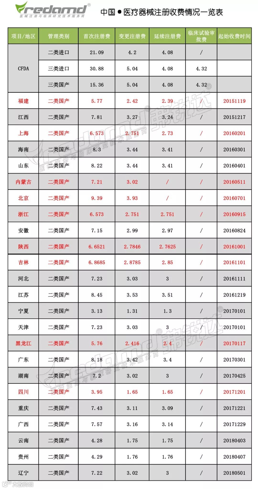 黑龙江人民政府发布《关于清理规范一批涉企收费项目的通知》(黑政办规〔2017〕33号),规定自2017年8月1日,黑龙江省国产二类医疗器械首次、变更及延续注册费用各减少20%。