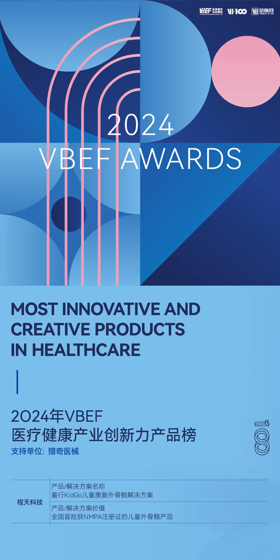 从四大领域(生物药及生物制品、高端智造及医疗器械、数字创新技术及供应链赋能产品、医疗产业链)评选出共计200款具有代表性的创新医疗产品及解决方案。程天科技童行KidGo儿童康复外骨骼解决方案凭借