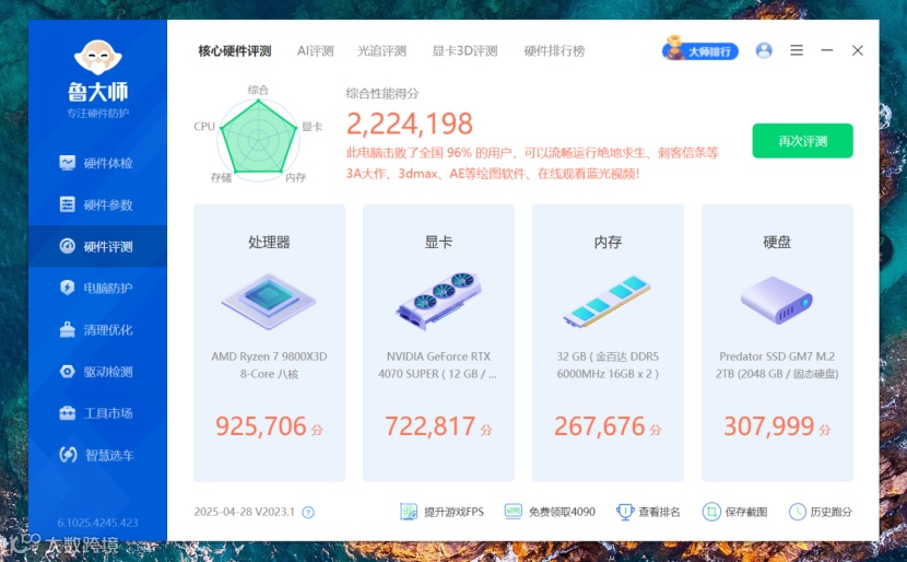 本次测试使用的是最新一代AMD平台,技嘉X870冰雕搭配Ryzen 7 9800X3D。
