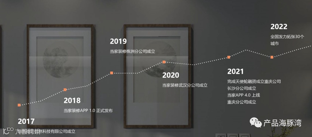 整合工匠、供应商,并能够把业主拉上平台,这相当于是一个四方平台(包括平台方)了,说实话这样的App 启动起来还是相当费劲的。我们接下来看看它的发展历程以及具体应用的功能特点,看看这里面有没有“吹牛”的成分。