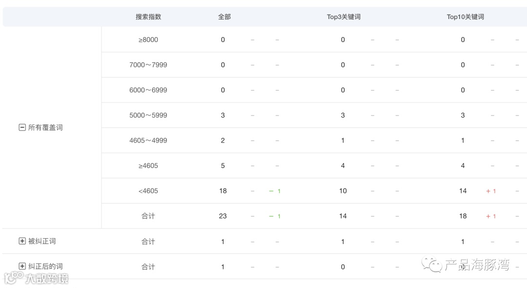 顺带看了一下他们的关键词分布,覆盖的关键词很少,热度词覆盖更少,排名 Top3的关键词也很少,可见在 ASO 上面做的工作不多。