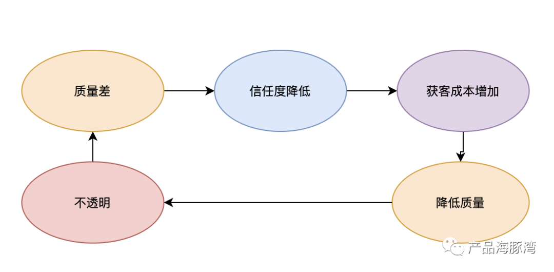 其实大多数人遇到的装修问题都和我遇到的类似,所以为什么很多装修会找熟人介绍。而另一方面,某些不良装修公司欺负业主不懂行,以次充好的现象时有发生。再加上为了获客,不断压低报价,甚至打出399元/平米的装修价格,结果要不是质量很糟糕,要不就是开工后临时加价。这些现象导致了整个行业陷入了下面的恶性循环。