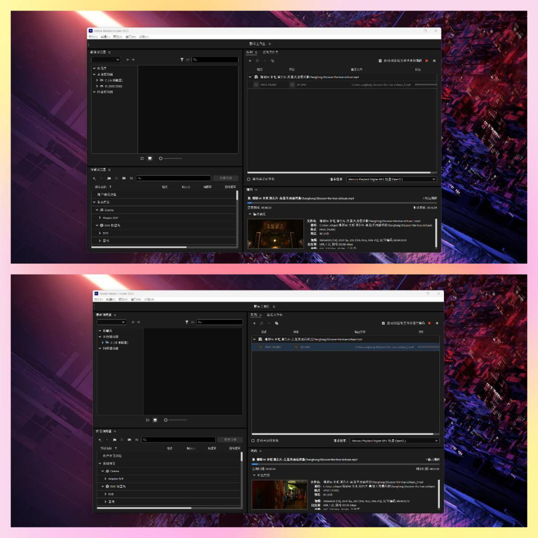 其次是解编码能力,测试工具为AdobeMediaEncoder,对4K视频美哉天府进行8K转码,测试结果如下图所示: