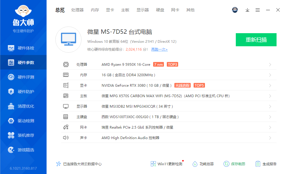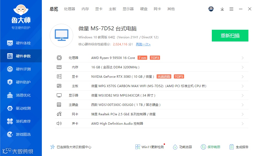 显示器我自己目前在用的是朋友那边借来的微星月神34寸带鱼屏,采用了10bit的VA面板,3440x1440 2k分辨率,覆盖92% DCI-P3和117% sRGB色域,支持HDR400,刷新率165Hz,1ms响应,体验非常好。