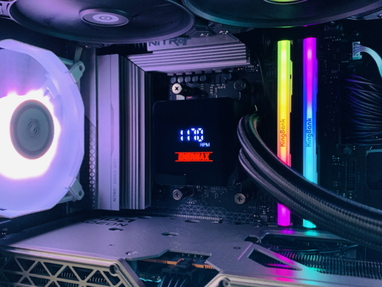 当主机点亮的时候,内存的灯珠也随之亮起,呈现出柔和绚丽的灯光视觉效果。