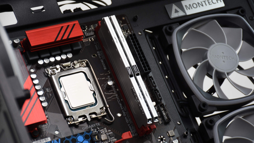接下来开始装机,我用的这块板子只有两条内存插槽,直接插上就行。需要注意的是,DDR5和DDR4内存条的插槽不同,中间防呆口的位置不一样,不能混用。