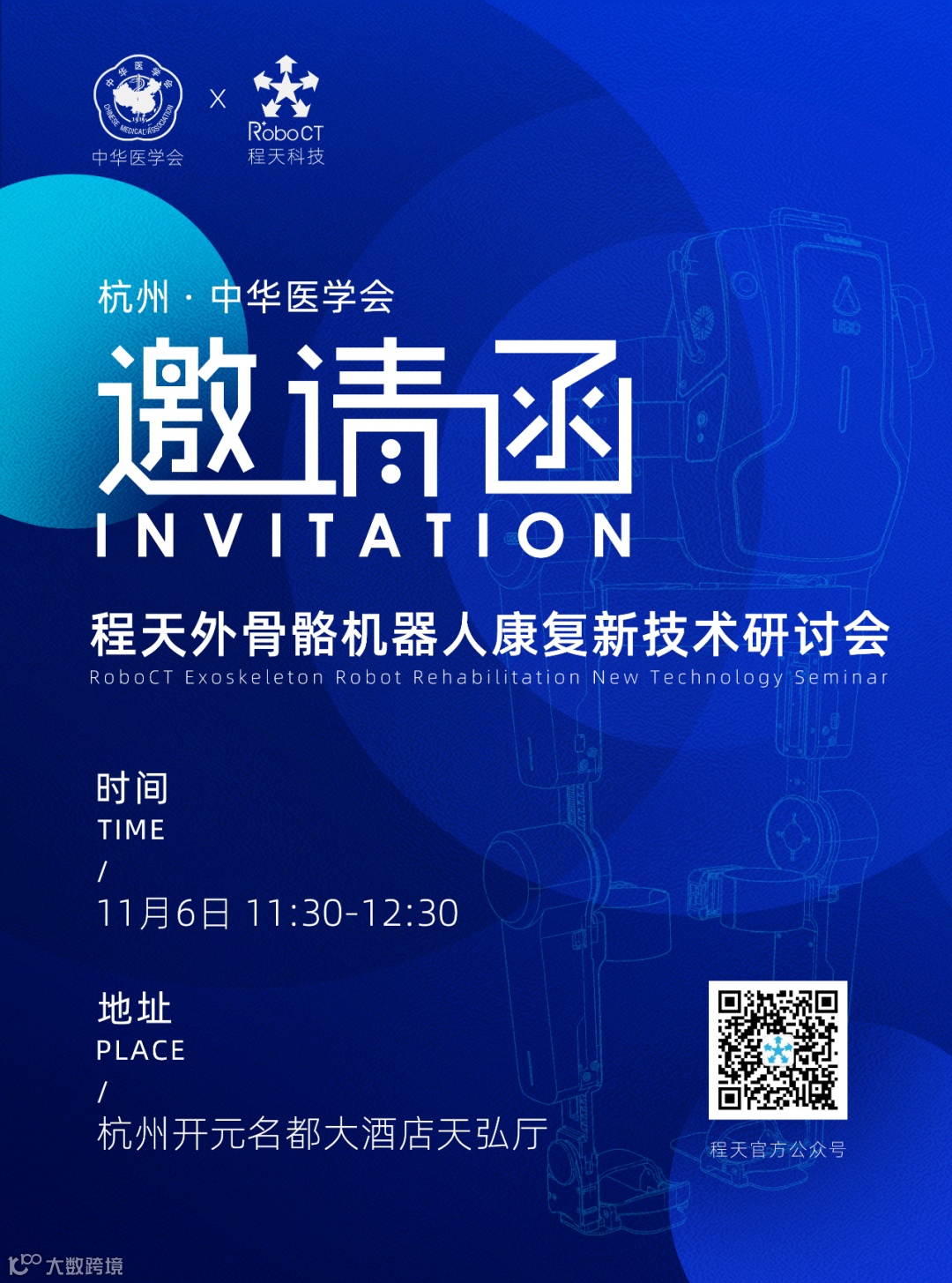 杭州程天科技将于11月6日在杭州开元名都大酒店天弘厅举办外骨骼机器人新技术研讨会,携手康复各界专家共同探讨外骨骼机器人的临床应用和展望,诚邀各位莅临、指导!