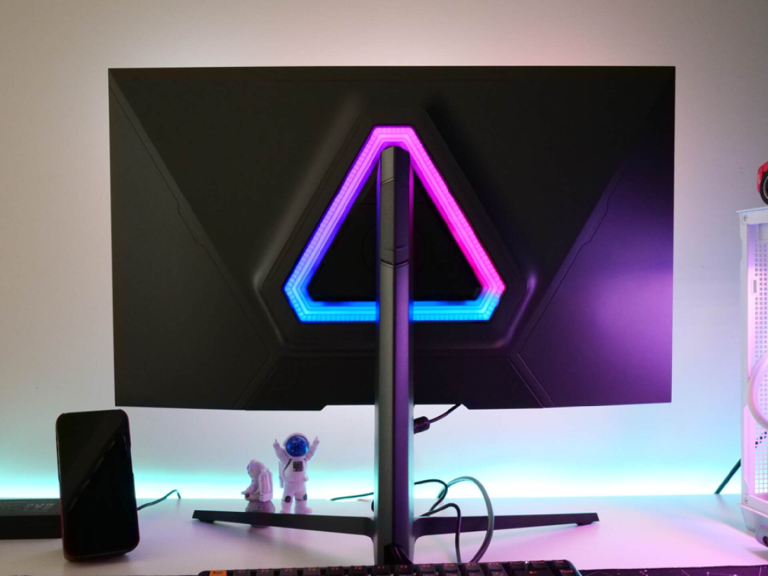 外观也是非常有质感,RGB背光氛围灯,支架采用人体工学设计,支持多维度调节,加上90W type-C+DP1.4接口,可以说是满配2K电竞显示器。