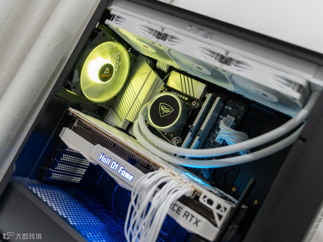 显卡是影驰 HOF RTX3090 EX限量版,带皇冠小屏幕,白色陶瓷马甲很有质感。性能可以通吃4K游戏。过气卡皇不如狗,当然玩一玩屏幕还是很欢乐的。