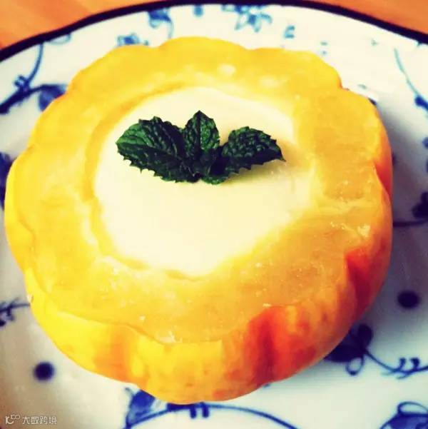 原料:南瓜500g,嫩姜10g,鲜奶、水各500ml,香菜叶3片,橄榄油10ml,酸奶5ml调味料盐、糖适量。