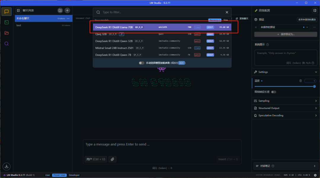 而在32GB内存的模式下,70B在加载的过程中就会发出警告。
