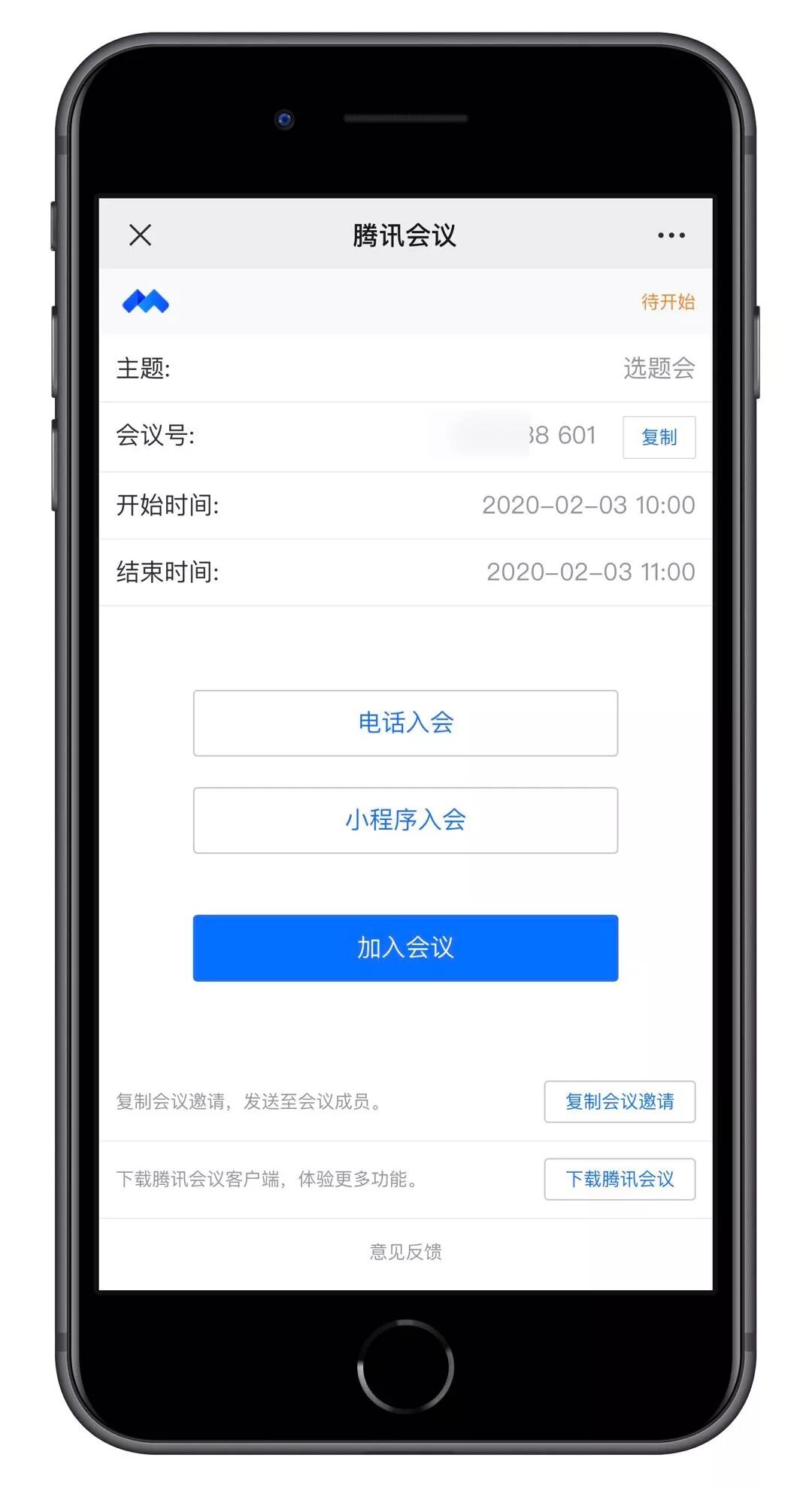 线上开会之前,通过「预定会议」设置会议的名称和时间等必要信息,完成设置后,将「会议链接」分享给相关人员,通过链接即可进入会议。