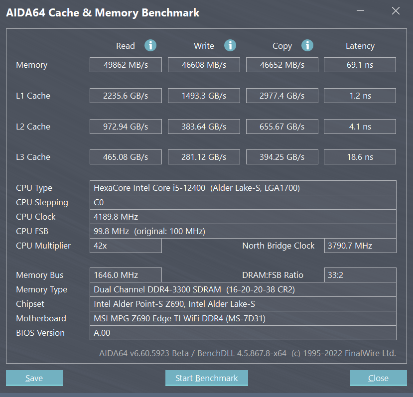 最后再上探一下性能极限,超频到3300,读取和拷贝的速度提升并不明显,延迟降低也比较有限,个人还是建议停留在3200MHz下使用最稳定。