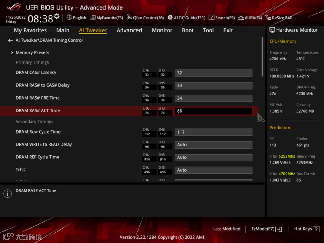没想到超频后时序还可以进一步收缩,尤其可见该内存的超频潜力不小。