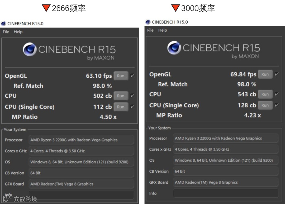 在2666频率下,是1241cb,而3000频率直接到了1323cb,提升达到了6%的性能提升