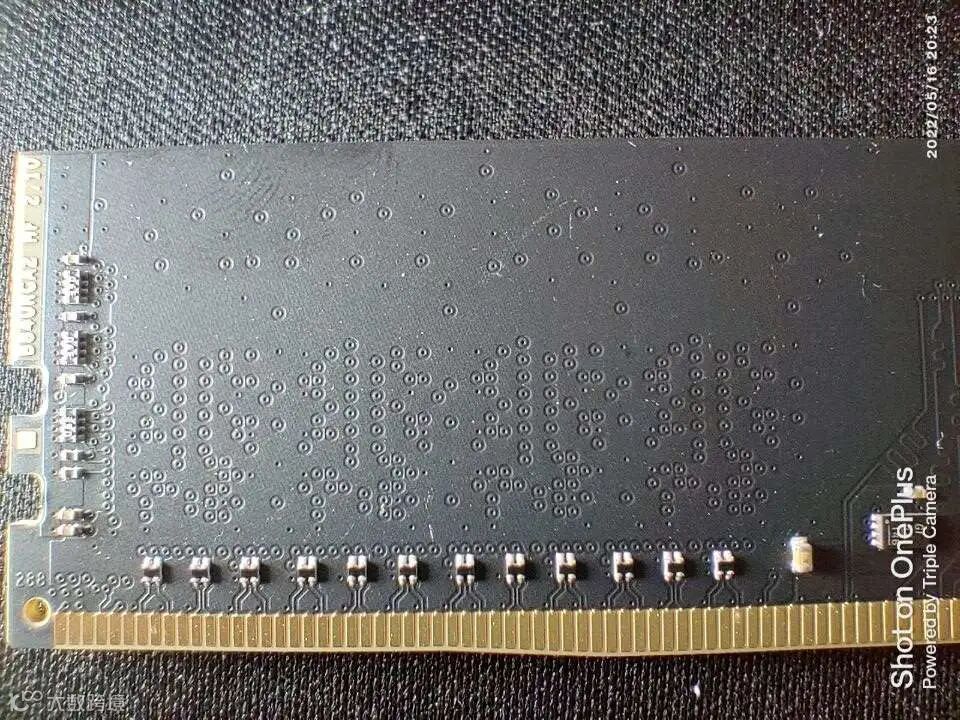 🔻背部的走线工艺很成熟,从工艺角度肉眼看上去很不错,金手指部分是DDR4特有的弯曲设计,并不是偷工减料导致的不齐,是为了更好的插拔和接口的稳定设计的。