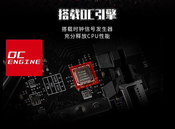 我之前在微星B660M迫击炮MAX上见过,在这个时钟发生器的加持下,一些非K处理器都可以通过调整外频进行超频。为此微星也将这个时钟发生器命名为超频引擎。