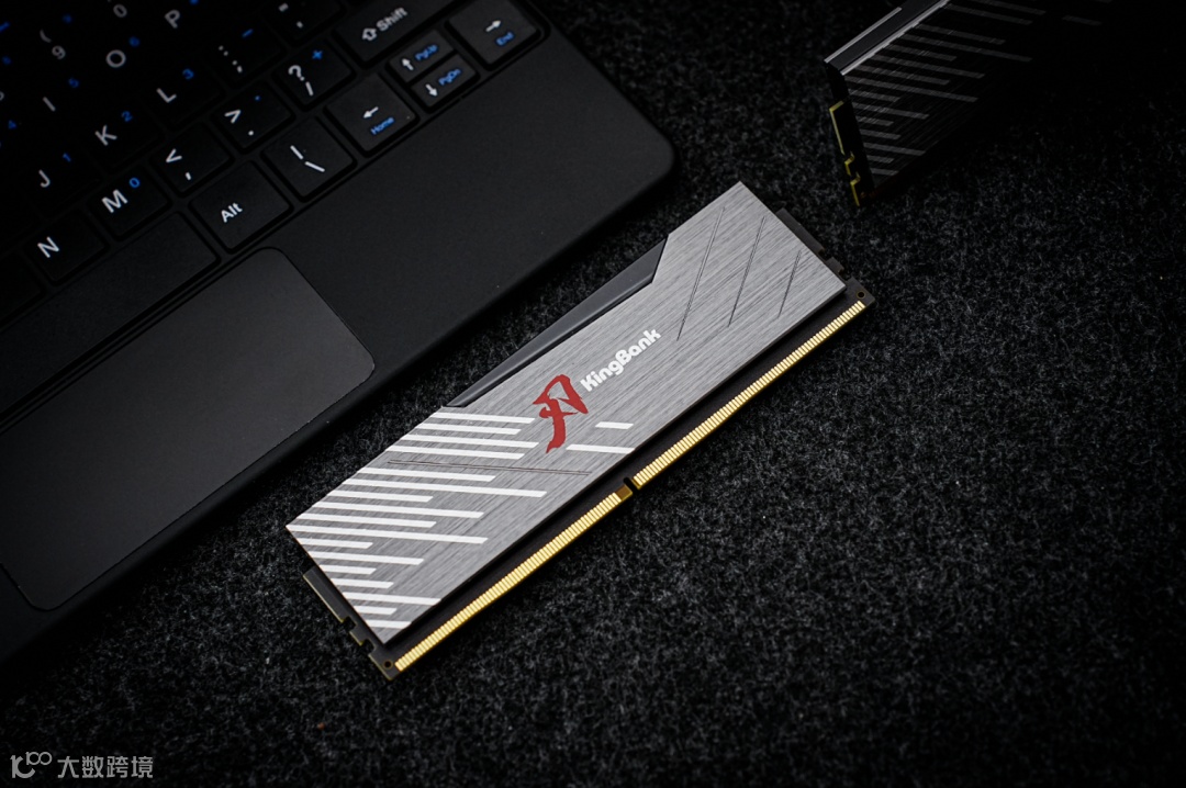 外观设计方面,黑刃带来的视觉压迫感非常强,采用的是银灰色的全金属散热马甲,同时白色的装饰条纹贯穿内存散热马甲的左侧,中间的“刃”字则是点睛之笔,与金百达的Logo完美结合。