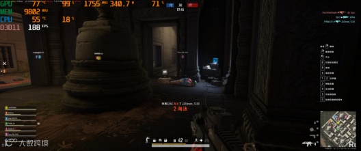 先说吃鸡游戏《绝地求生》,在全特效的换机下,游戏帧数基本上稳定在180~240FPS左右。并且通过内存频率的调整,我发现该游戏在DDR5的环境下提升并没有太显著。