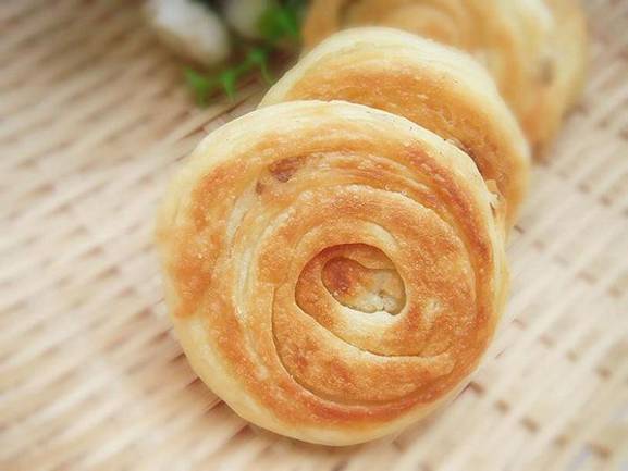 油旋是济南的名小吃。外形似螺旋,表面油润金黄,吃起来外皮酥脆,内瓤柔嫩,一股浓郁的葱油香气会从中间的旋纹中慢慢散发开来,吃油旋一定要趁热吃,还可以配上一碗鸡丝馄饨,更加美味!绝对的物美价廉。