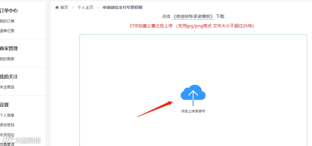 第三步,将已经加盖公章的承诺书上传到商城上。