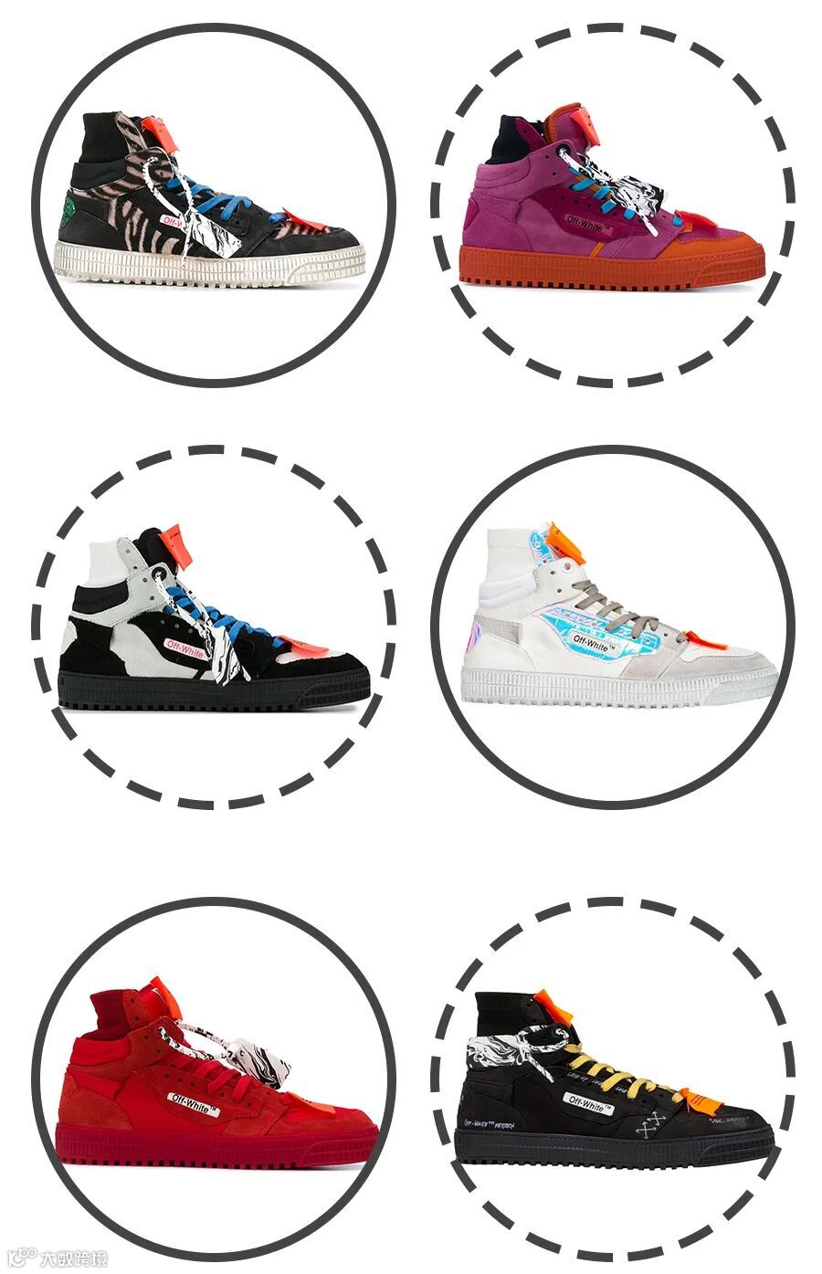 大胆而又动感十足,箭头标志也布满整个侧面,将OFF-WHITE品牌的风格展现的淋漓尽致,好看的配色也有很多!