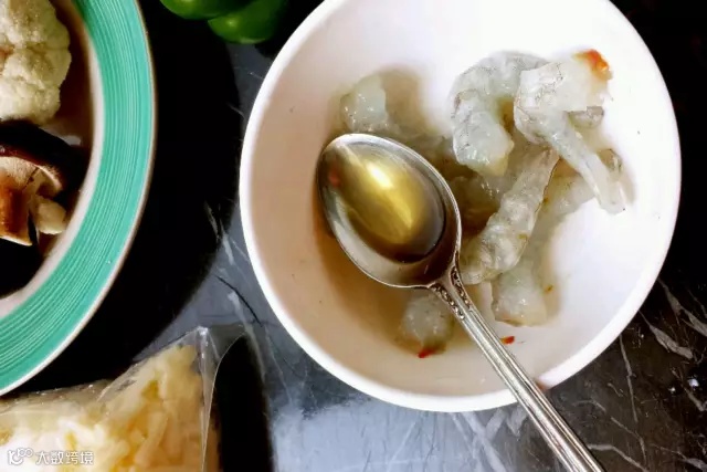 ① 先把鲜虾去壳,开背去虾线,腌制~料酒半勺,盐1/3小勺,白胡椒粉1/3小勺,淀粉半小勺,搅匀了一旁腌制15分钟