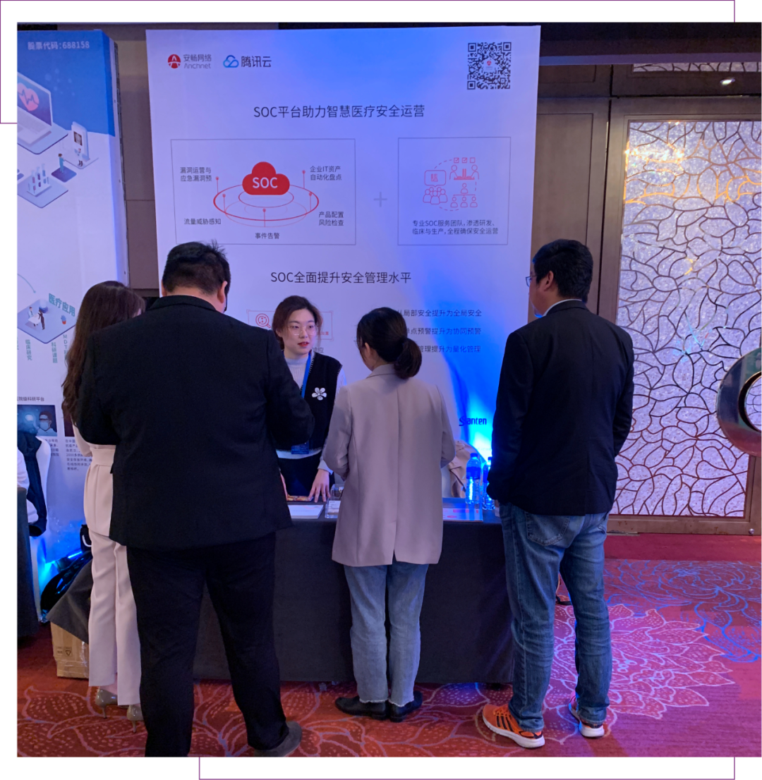 今天,以“数字医疗 健康中国”为主题的上海市智慧城市大讲坛第三届长三角医疗信息化论坛在上海顺利召开。安畅网络携“SOC注安全运营中心解决方案”亮相,面向医疗医药企业在云时代下的信息安全困境,以全面成熟的服务,支撑SOC平台投入运营,逐一击破安全痛点。