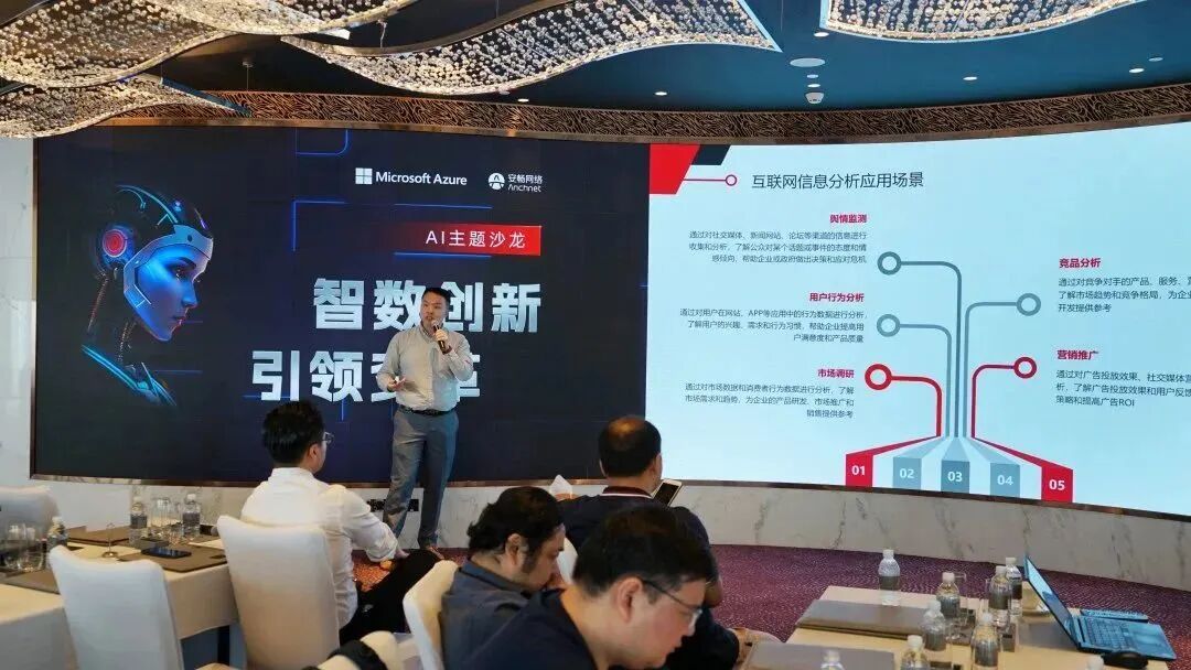 在活动中,安畅搭建了社交机器人Demo,让参会企业亲身体验在微信社群运营场景中,如何利用AI技术实现图文内容互动,提升社群活跃度。在分享的最后,安畅微软战略合作总监许宁展示了AI在千行百业中的应用场景和解决方案,并介绍企业如何安全、合规、快速的接入微软AI产品,利用微软强大的AI产品矩阵驱动业务创新。