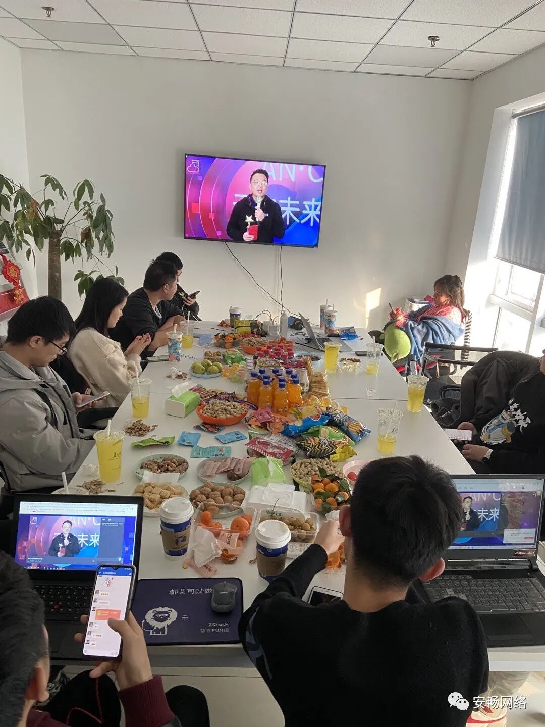 在某个周五的下午,伴着微暖的阳光,安畅人暂别忙碌,前往遍布公司各处的茶歇点打卡。满溢的美食成了吃货们的天堂,积蓄一整年神秘力量的欧皇们为贯穿年会始末的五种大奖摩拳擦掌,手机党刷不停的年会节目早已释出上线,边吃边看边抢年会红包才是最优解。