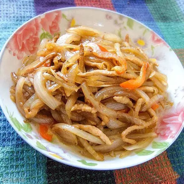 原料:素肉60g,洋葱半个,油适量,盐适量,豆芽10g,生抽2汤匙,香醋0.5汤匙