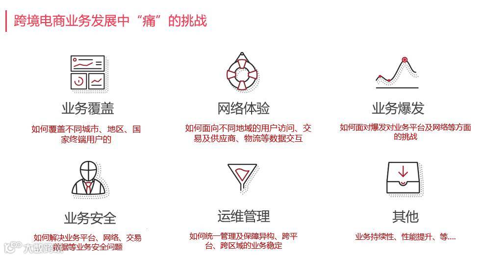 安畅作为一家企业,有良好的价值观非常重要,我们的价值观是“客户第一,用心服务,诚实担当,持续改进,共同成长”。在这些年的发展中,我们对客户需求进行了总结。平时大家会考虑业务怎么发展和大环境的机遇怎么样,对于我们来讲,更关注在当前竞争日益激烈的大市场环境下如何更好的服务与支撑客户的业务发展,我们把其中遇到的问题和经验拿出来做总结。基本上分为几个方面:因为我们跨境电商的终端用户我们并不知道来源于哪里,可能在北京,可能在沈阳,可能在一线城市,也可能在一个三四线城市,也可能在一个非洲城市,不知道可能会源于哪里。无论是平台型还是自营型,都要思考如何让我们的业务平台能无差别的向不同城市、地区、国家的终端用户提供稳定的访问和服务,让他们更快更好的使用我们的平台来选购商品并进行交易。