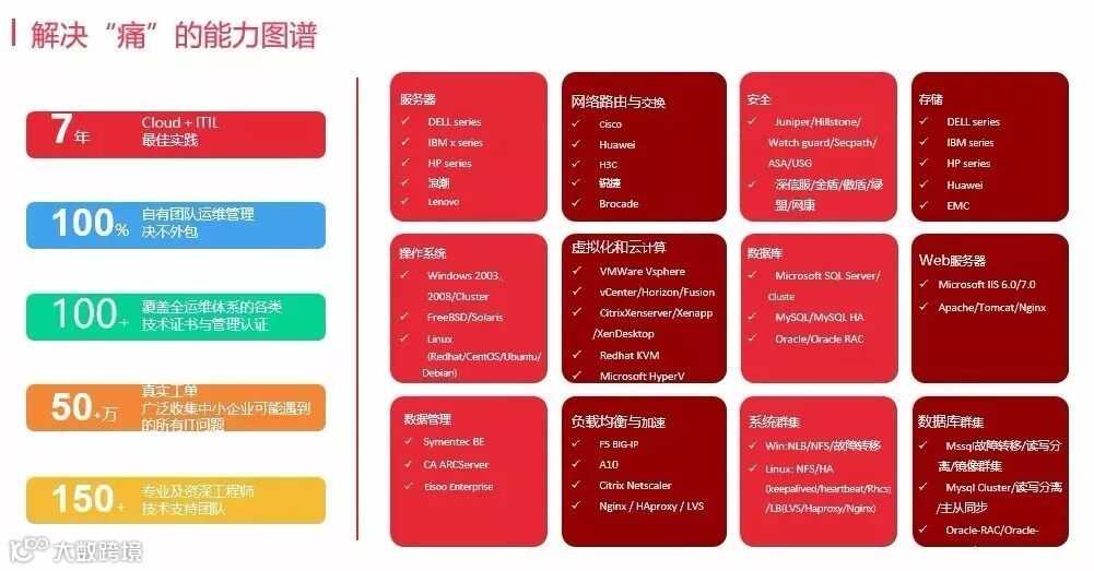 我们从不同业务规划周期,根据业务规模、类型、业务的倾向性,从大陆到海外不同的业务实施以及业务管理,以及不同活动、不同促销环境下对我们带来的突发需求,都会对日常业务的经营和发展带来很多问题。我们发展了七年,积累了大量的经验,有一个比较专业的团队,在七年中,150多位工程师拿到了100多个相关领域的证书。其次,七年中,我们处理了大概50万条客户有问题的工单,这些工单为我们积累了大量的实践经验。