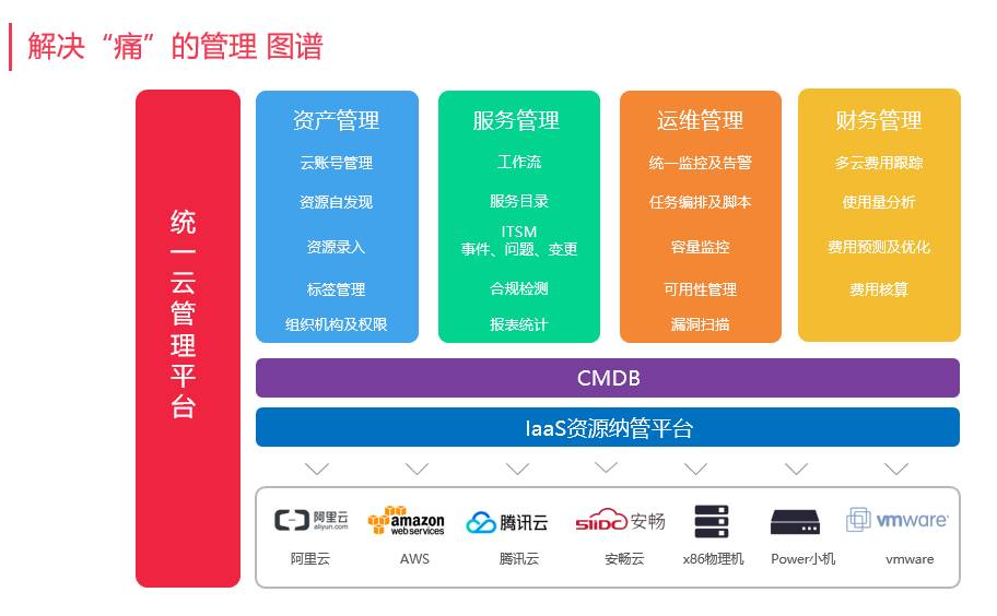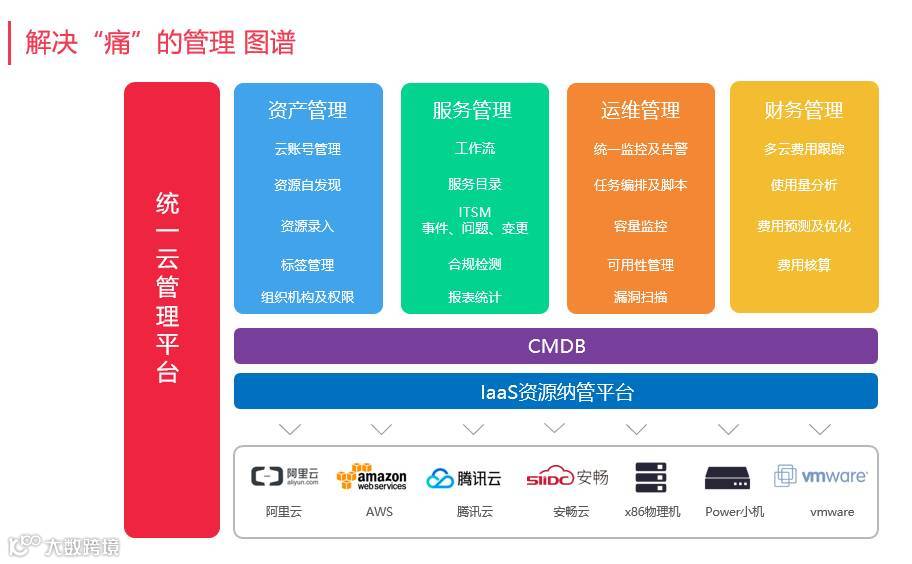 这是我们管理图谱,因为不同的电商客户对财务、管理、服务要求都不一样,我们平台要支持在财务以及其他运营管理上的要求,当然也支持国内和海外的其他公有云平台做管理。