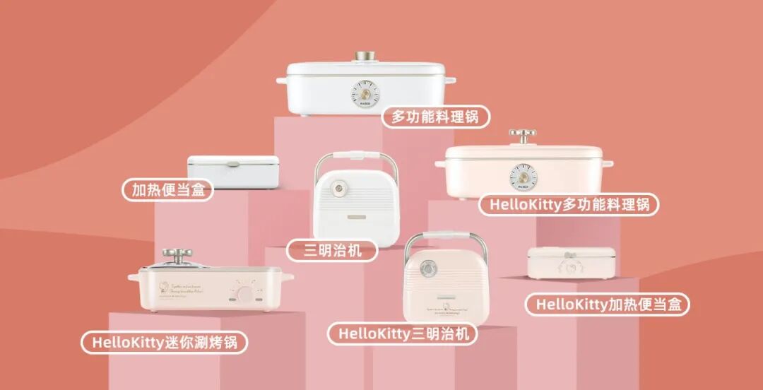 适盒&HELLO KITTY限量联名版,推出了料理锅、便当盒、三明治机和涮烤锅四款限定系列。专属料理锅蝴蝶结把手和限定标识,守护每一颗少女心。