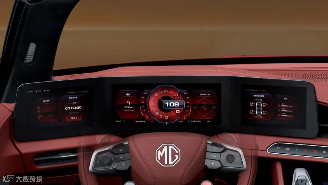 设计团队充分研究了跑车中驾驶者的坐姿,相较于轿车和SUV,跑车驾驶者距离屏幕稍远。因此,在常规的语音、触控交互基础上,MG Cyberster在方向盘交互上做了更多创新,其采用类似游戏手柄的摇杆和按键,且左右侧控制相应侧的屏幕显示,让操控乐趣倍增。