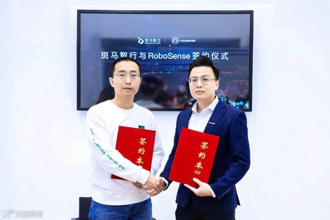 (图注:斑马智行与速腾聚创战略签约。左:斑马智行CIO徐强,右:速腾聚创执行总裁兼联合创始人邱纯潮)