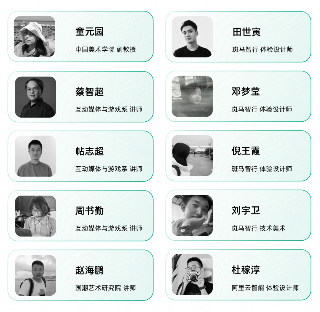 此次工作坊由中国美术学院动画与游戏学院童元园副教授主讲,互动媒体与游戏系教师蔡智超、帖志超、周书勤,及斑马智行的企业导师田世寅、邓梦莹、倪王霞、刘宇卫联合讲授。同时特邀阿里云的杜稼淳讲师和国潮艺术研究院的赵海鹏老师为同学们提供设计辅导。