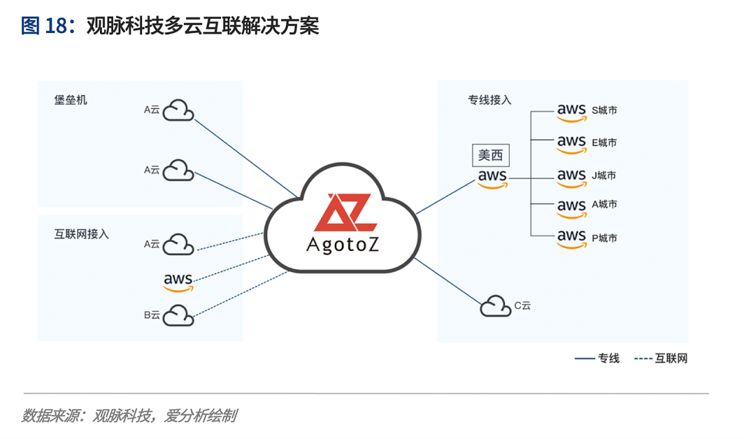 为了提升业务响应的速度,实现多个公有云之间的业务访问,针对业务流量进行统一管理,并基于网络流量提供及时的告警信息,该企业采用观脉AllWAN实现多云互联。
