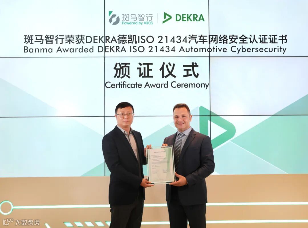 5月24日,上海,斑马智行荣获由DEKRA德凯颁发的ISO/SAE 21434汽车网络安全认证证书。斑马智行首席信息安全专家李斓先生,DEKRA德凯亚太区高级副总裁、中国大陆及香港董事总经理Kilian Aviles博士,DEKRA德凯中国汽车网络安全总经理罗黎先生等双方代表出席了此次颁证仪式。