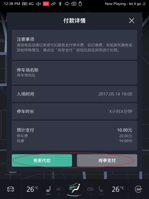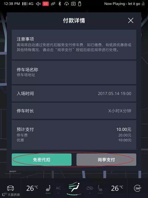 当您进入支持斑马车机的智慧停车场,无需停车自动进场,出场(首次会弹出停车服务授权及免密支付授权)无需停车,也不需要掏出手机,自动支付即可离场哦。
