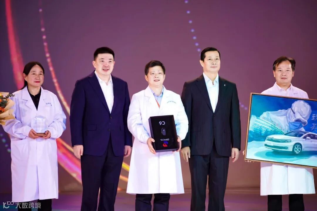 武汉市委副书记、市长周先旺和东风公司董事长、党委书记竺延风,共同代表神龙公司,向抗疫英雄张定宇团队送出一辆全新东风雪铁龙C6。