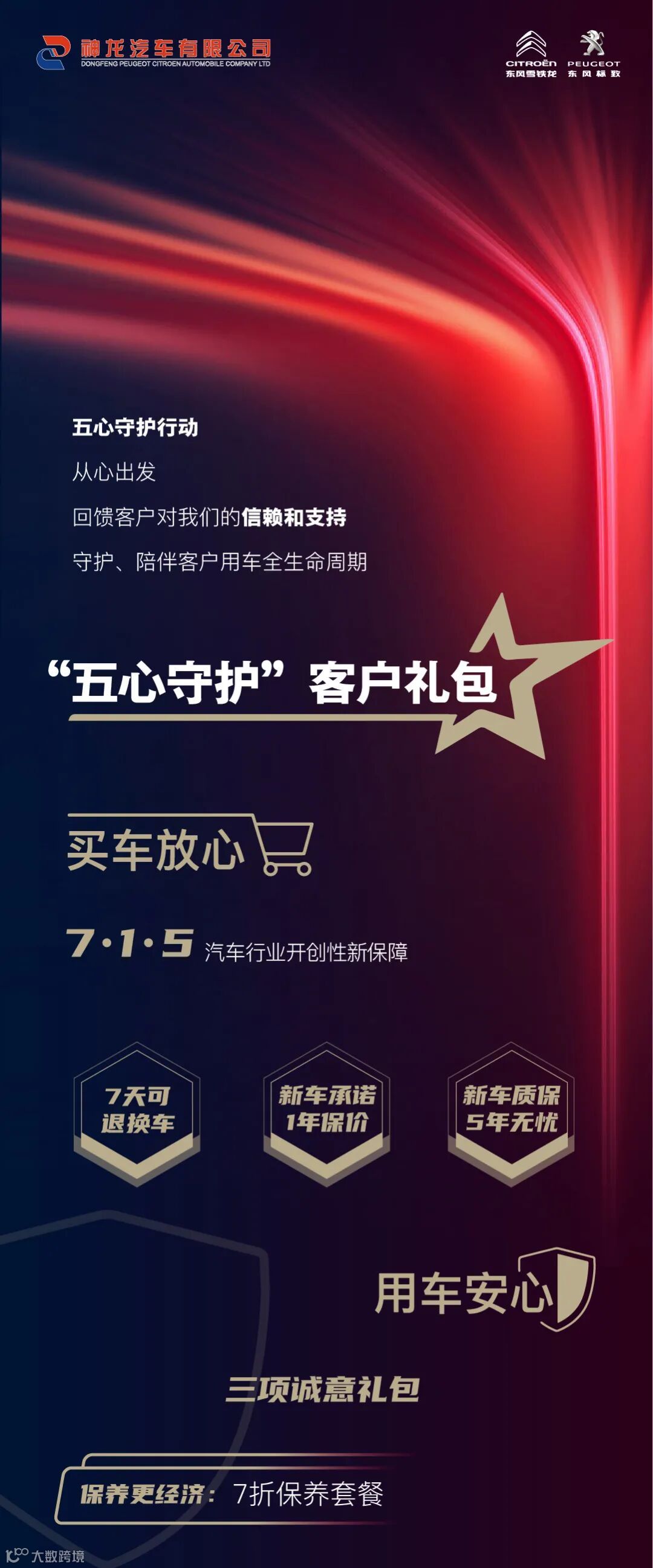 同时,为了解决客户痛点,最大限度地满足客户需求,神龙汽车重视并倾听客户声音,实施“五心守护行动”,通过“买车放心、用车安心、服务贴心、换车开心、一路同心”,来守护、陪伴客户用车全生命周期,真诚感恩600多万东风雪铁龙、东风标致车主的支持与信任。