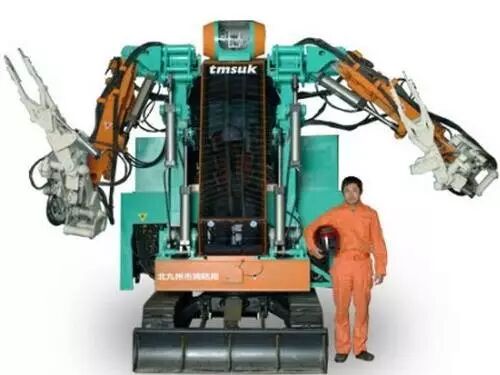 日本还有个身躯庞大的机甲——T52 Enryu。它高3.5米,宽2.4米,重达5吨。两个胳膊各6米长,总共能抬起1吨重的负荷。2004年由日本机器人公司TMSUK主要开发,设计目的是用于灾难救援,如地震、海啸和车祸等,由于其远程可控性,尤其适合代替人进入危险的环境。