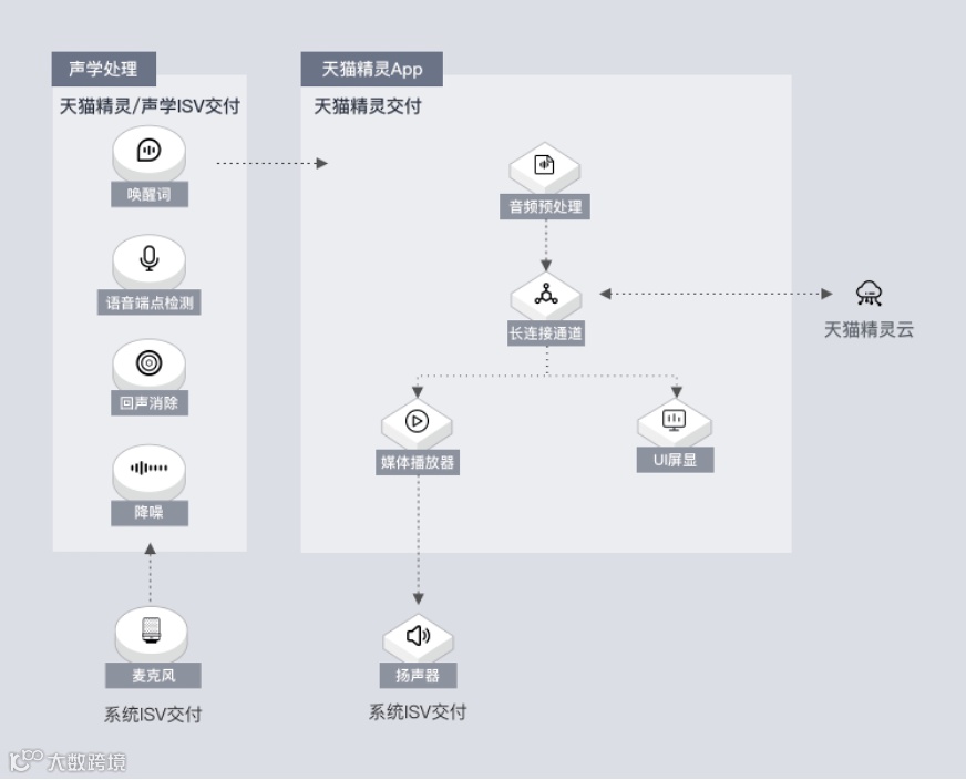 虽然存在差异,但语音交互的整体逻辑相类似:前端信号识别处理——后端语音识别将声音转化成输入的文本——通过语义理解解析出指令和关键信息——通过对话管理上下文——产生系统动作进行响应——语音合成生成音频回复用户。