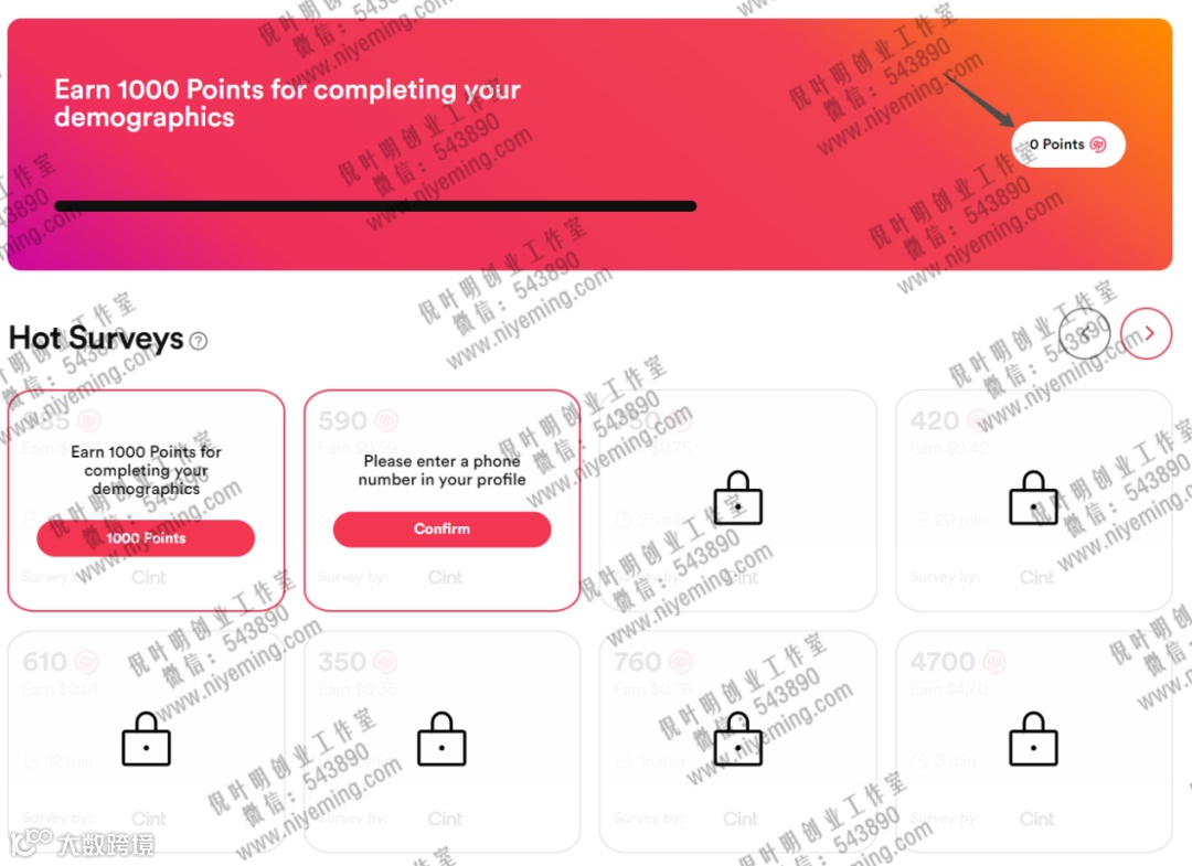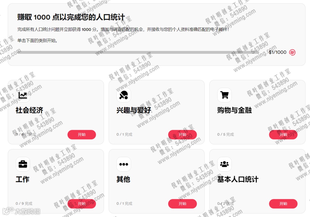 平台要求用户累计达到1000积分后方可解锁调查类任务,初期可通过完善个人资料提升任务匹配度。