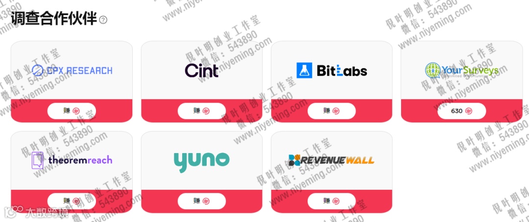 GrabPoints还对接多个合作调查平台,完成主站任务后可同步获取外部调查任务机会,进一步拓展收入来源。