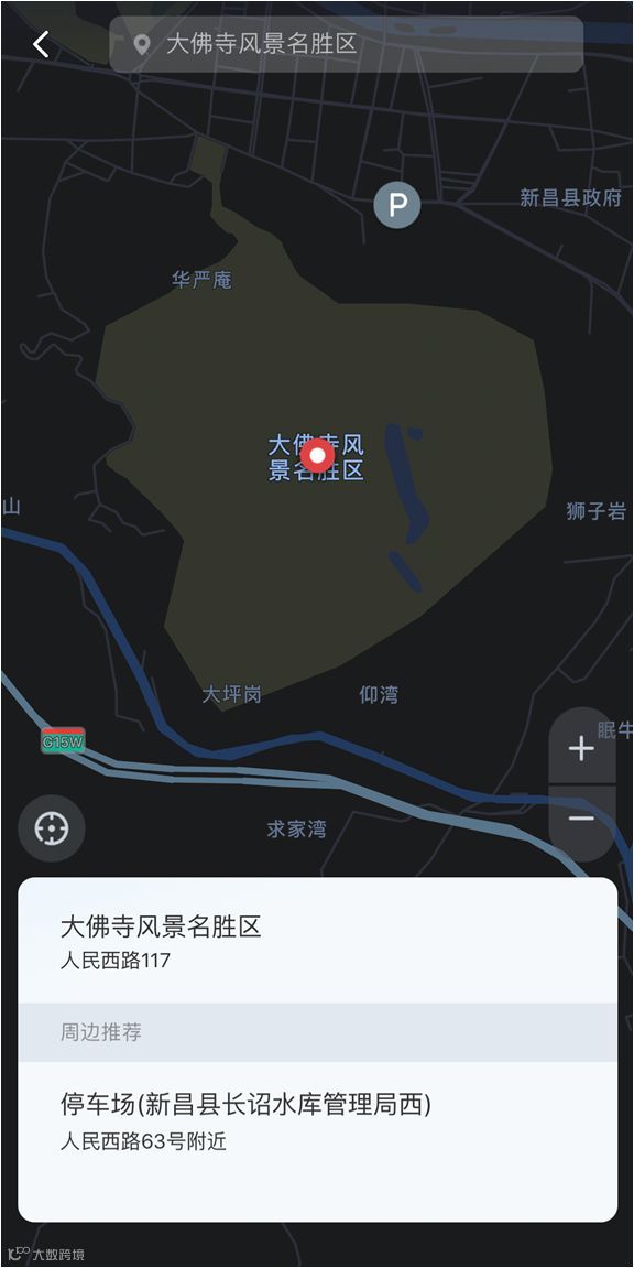 如果到了景区,想下车走走,系统会提醒附近有哪些停车场。