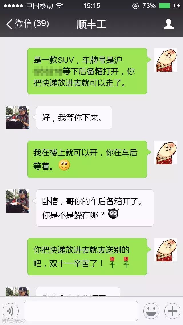 快递小哥满脸蒙弊,默默的在物流信息上打上“后备箱签收”。